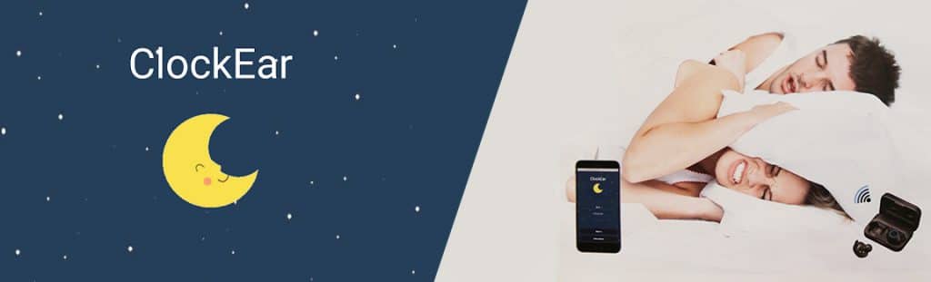 Loïc : Clockear, c’est un bouchon d’oreilles connectée qui, en plus d’évidement servir à se protéger en partie du son ambiant, sert également d’alarme – ce qui permet à son utilisateur de se réveiller sans gêner son ou sa partenaire – et offre également des services de coaching et d’analyse des cycles du sommeil.