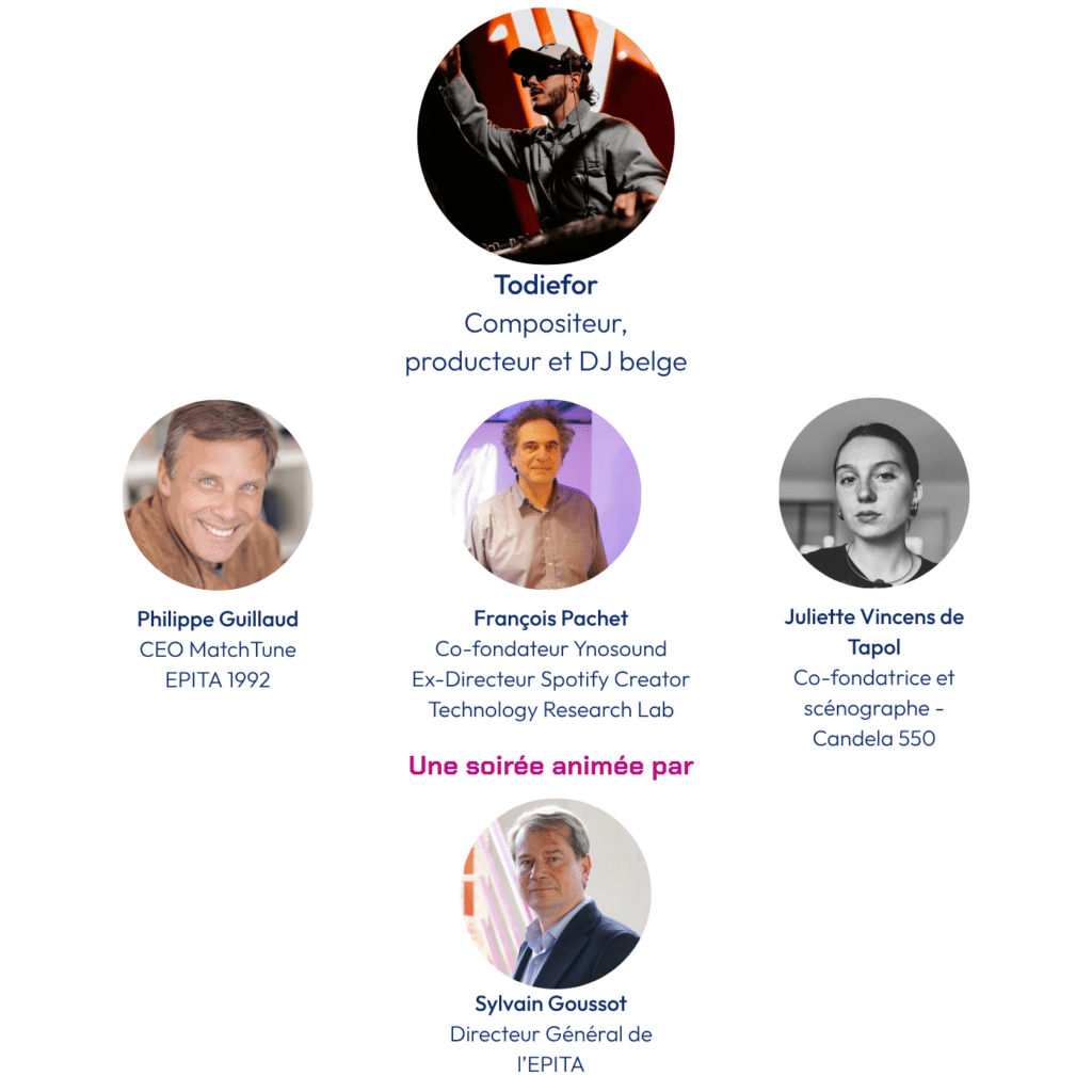 Pour cette soirée exceptionnelle, nous réunissons TODIEFOR, DJ et producteur belge multi-certifié, ayant collaboré avec Vald, Vladimir Cauchemar ou encore Kaaris, aux côtés de chercheurs et d’entrepreneurs qui travaillent au cœur de ces transformations, pour comprendre ce qui change réellement aujourd’hui dans la musique avec l’IA.